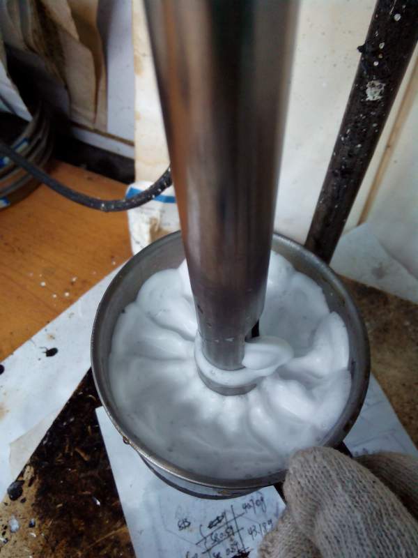 请教大家,我打算采用高速剪切机制备乳化沥青,所以预先将乳化剂溶解在水中配置皂液并进行适当剪切,但是剪切时发现,皂液在剪切力作用下不能很好的分散,出现不正常的泡沫化现象,逐渐变稠,看不到液体成股飞散,失去流动性,而不像比如洗衣粉水一样搅拌呈大泡沫,不知是何原因,还请多多指导! IMG_20141203_160041.jpg IMG_20141203_160117.jpg |