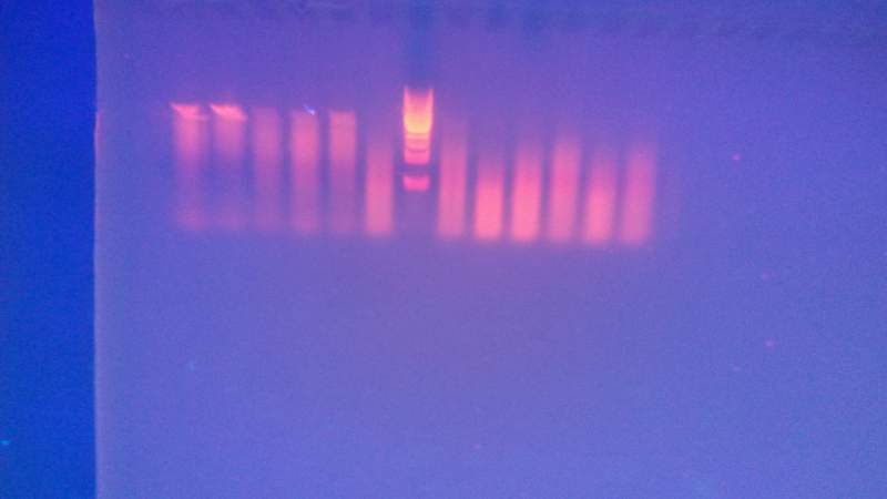 质粒酶切后,用sacI酶切后条带弥散成这个样子,这可能是什么问题呢,求各位懂的大仙儿给看看,这是什么原因,不胜感激。