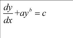 微分方程放在下面了,其中参数a、c大于0,1<b<2 上传图片老是不对,只有字母输入了y'+a*y^b=a 333.jpg [ Last edited by feixiaolin on 2014-12-4 at 19:14 ] |