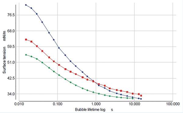 缩孔又称陷穴,是指涂膜上出现圆形小坑的弊病。涂料施工后,湿膜在流平过程中出现回缩,干燥后留下若干大小不等、分布各异的缩孔。这是因为湿膜上下部分表面张力不同,流平性不良所致。可采取加入适宜的流平助剂或低表面张力溶剂来解决。 涂料缩孔的产生原因 图涂料缩孔产生的主要原因 如图所示,涂膜从低表面张力点流到高表面张力点形成缩孔,一般低表面张力点可以是加工过程中的灰尘、油滴等,也可能是未被充分润湿的粉料。 为了减少缩孔的影响,使用低表面张力的润湿剂能够有效的润湿,并且很好的分散引起缩孔的颗粒。 导致涂料缩孔的可能因素 1、涂装前处理脱脂不良或者清洗后又被油污、尘埃污染。 2、槽液的颜基比失调,颜料含量低的易产生缩孔。 3、补给涂料中树脂溶解不良,中和不好也有可能。 4、涂装环境差(包括烘炉),空气中含有油雾,漆雾或含有机硅物质等污染被涂物或湿涂膜。 涂料缩孔表面张力解决方案 如何解决涂层缩孔的问题?有时候,表面张力不一定是越低越好,底涂要比中涂、面涂的表面张力稍高一些。各涂层、油墨层之间需互相配合好。您可以使用SITA的表面张力仪测出整条动态表面张力曲线,有针对性的找出问题来调节配方,快速高效。即使是出现边角润湿、泡沫过多等问题时,可以利用表面张力仪马上找出是否与表面张力相关。 ◇蓝色配方 在实际使用中出现缩孔,其动态表面张力较高。 ◇红色配方 偶尔出现少量缩孔,仍需继续改进。 ◇绿色配方 在实际使用中无缩孔,其动态表面张力相对最低。 |
