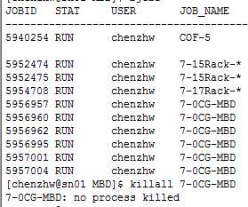 | 求大神指点~~~~在网上找了好久有关这方面的Linux命令,都没有找到·············现在撤销任务的过程太痛苦,都是一个一个杀掉,完全属于菜鸟级。有没有什么命令,或者是小程序之类的可以一次性杀掉连续任务号的多个任务,或是任务名相同的多个任务。在此跪谢!!!!! |
