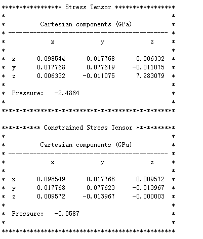 castep模拟应力应变曲线的时候,通过改变晶格常数,几何优化后即可得到应力值,那么下面的两个应力到底是所需要的应力值呢?
