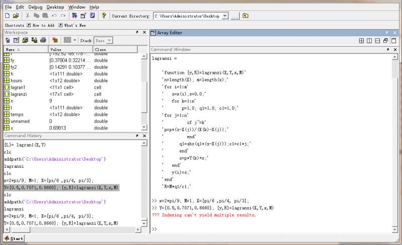 哪位大神可以帮忙解决一下? 题如下:给出节点数据f(-2.15)=17.03,f(-1.00)=7.24,f(0.01)=1.05,f(1.02)=2.03,f(2.03)=17.06,f(3.25)=23.05,用拉格朗日插值及其误差估计的MATLAB主程序求f(2.5)的近似值,并估计其误差。 L]HU0EF%RNCM{6_GE1TB7IB.jpg |