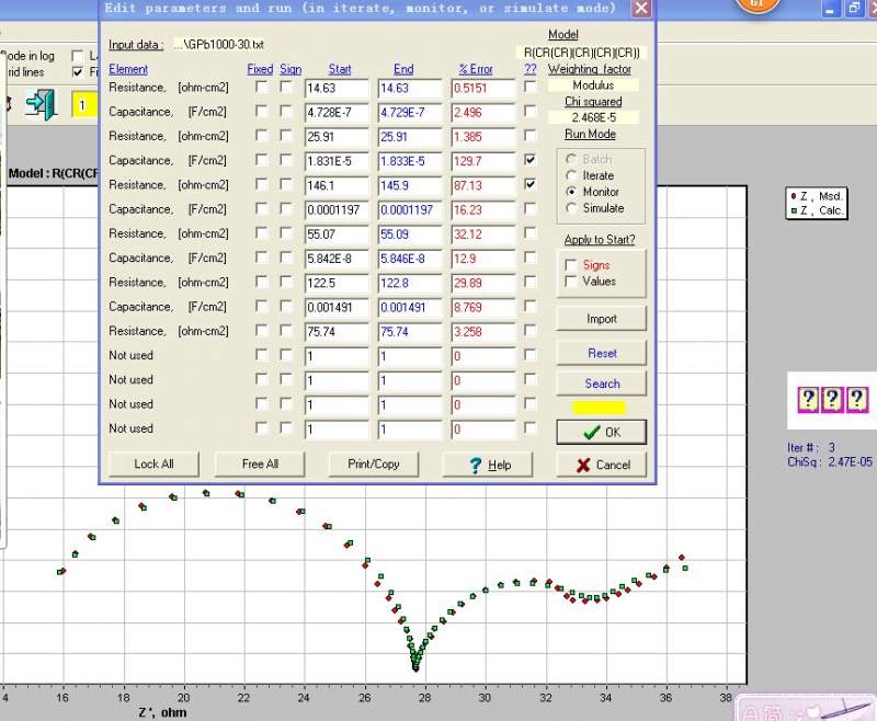 用Zsimpin等效电路拟合阻抗值的问题