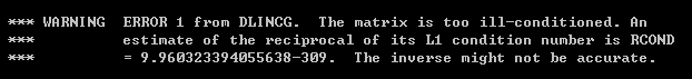 我在用fortran程序编写一个程序时,下面是我的要求逆的矩阵sd。但是求出来编译器提示,说他是一个病态的矩阵。1、请问求出来的结果sd45有用吗 2、为什么说我的sd矩阵是个病态矩阵呢?