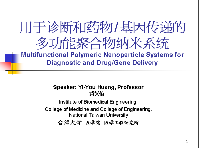 2014.11黄义侑(台湾大学)—用于诊断和药物基因传递的多功能聚合物纳米系统 已有1人参与