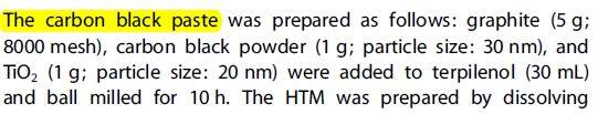| 看有些人在做钙钛矿电池时候,最后一层不镀金和银,却是刮上去一层碳浆,我想求助大神,这碳浆究竟是由什么组成的?溶剂和溶液的比例是怎样的?最后是怎样刮在空穴传输层上面的?谢谢! |
