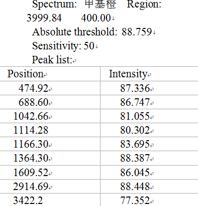 下面是原甲基橙红外分析和光催化降解甲基橙吸附在催化剂上甲基橙红外分析,我想看看光催化后(后者)甲基橙是否被破坏了,请各位帮忙分析一下,谢谢 原甲基橙 原甲基橙红外图 光催化降解后甲基橙红外图 光催化降解后甲基橙数据 |