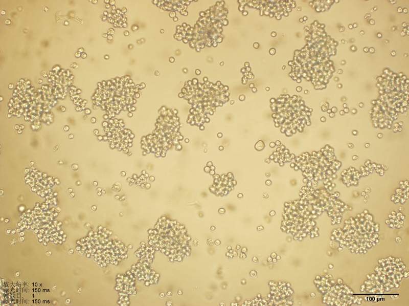 培养基:DMEM高糖培养基,10%血清,WEHI-3肿瘤细胞(半铁壁细胞),解冻培养一段时间后为什么都聚在一起了? 这种细胞培养时贴壁的有多少,悬浮的有多少,悬浮的是单个散在的还是聚在一起的,大概多久换一次液?从照片上看,能看出细胞污染了吗? 图像_1.jpg |