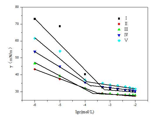 | 我测定了表面活性剂的一系列表面张力数据,然后做出了γ-logc 的图,怎么在此图上求出临界胶束浓度,求教具体做法 |