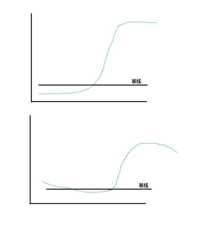 可以看到,下面那个图,因为前面有个比较高的点,而基线设置不好,把整个曲线都整体掰弯了。