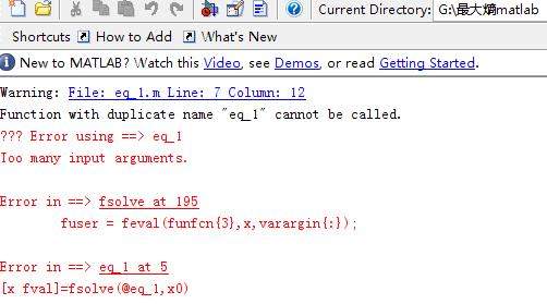 多谢同学。我把上述代码复制到m文件里 把此文件命名为eq_1.m。但是运行出错(见附图)。matlab新手,多多指教啊。