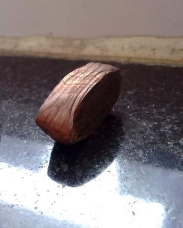 图为Gleeble压缩后纯铜试样外观(压缩前是Φ8*12mm的圆柱)。试验参数750摄氏度,0.1s-1,变形量0.7。出现了压缩后试样,太过椭圆。