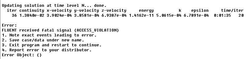 FLUENT received fatal signal (ACCESS_VIOLATION)
