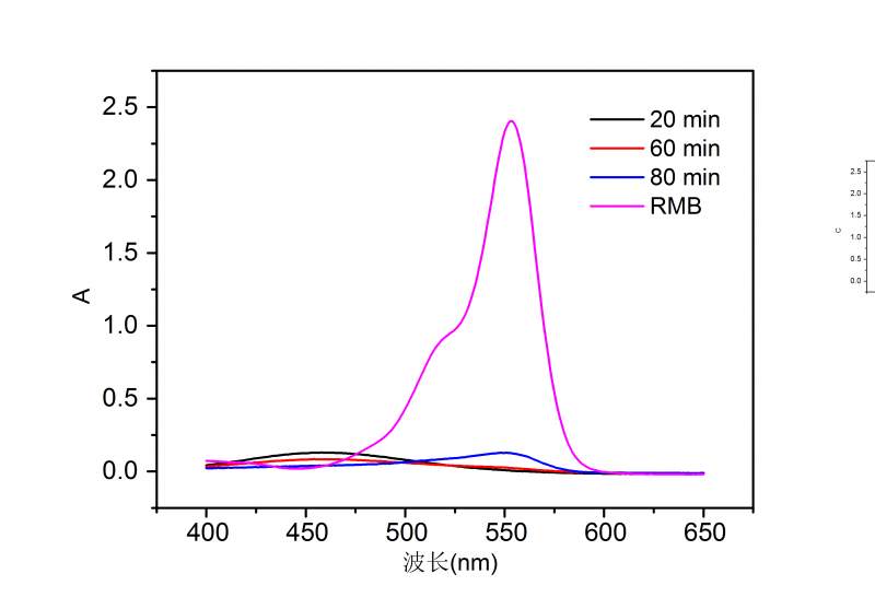 光催化罗丹明B反应后罗丹明B紫外吸收峰蓝移
