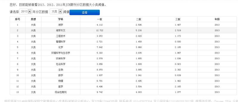 2014年中科院分区 化学类阈值