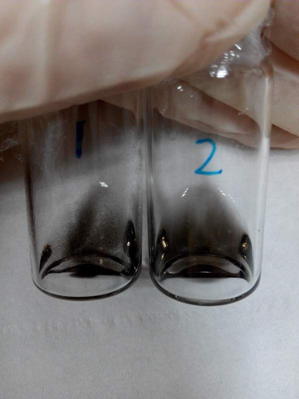 我想请教各位一个最近遇到的问题:单壁碳纳米管在正丙醇中经超声,离心后分散性良好且很稳定。但是在单壁碳纳米管的正丙醇溶液中再加入1,4-丁二醇,GMA,EDMA后,再次超声,单壁碳纳米管就开始聚集成团块了,这是为什么呢?如果以上各物质混合以后不超声,只震摇的话仍然可以保持分散均匀的状态,这又是为什么呢?下图是两种现象的实物图比较~