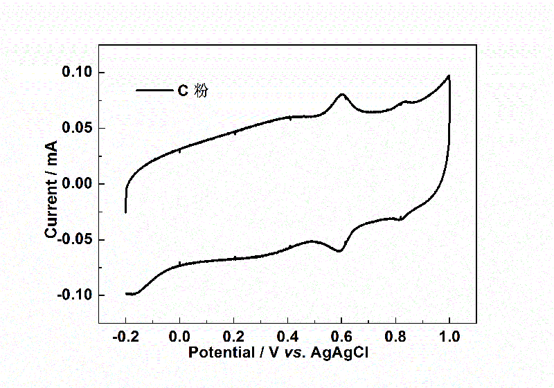 该测试是已处理过的碳粉在0.5MH2SO4中测试的CV,该碳粉是经过2M硝酸以及H2O2处理,最后用去离子水及丙酮洗涤烘干,最后投入使用
