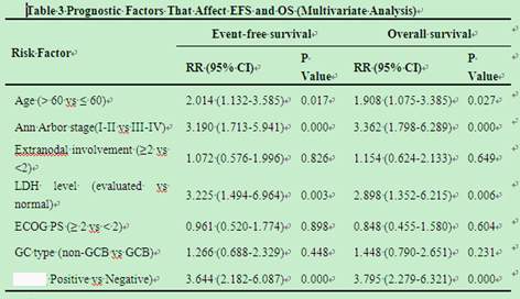 我觉得表2、3中给出的信息非常清楚,如但因素中年龄因素对EFS和OS均有非常显著的影响,而性别则无影响;在多因素中,年龄仍有显著影响,而GC表型则无影响(GC表型在但因素分析中有非常显著差异)。 为什么审稿人提出异议?原因有二:一是他没有看明白p value是指谁与谁相比较,即没有注意最左侧一栏;另一种可能,也许是你给出了具体的p value值,而非p<0.05, p<0.01和p<0.001等值,所以审稿人就有点晕乎,这种情况说明他对统计分析不是太熟悉。 基于以上两种可能,回答时强调两点:一是这些p value的对象是最左侧一栏之间的相互比较;二是再次(其实没有必要)重复定义说,p<0.05表明有显著意义,p<0.01表明有非常显著统计学意义等。 其他我看不出有什么问题。 |