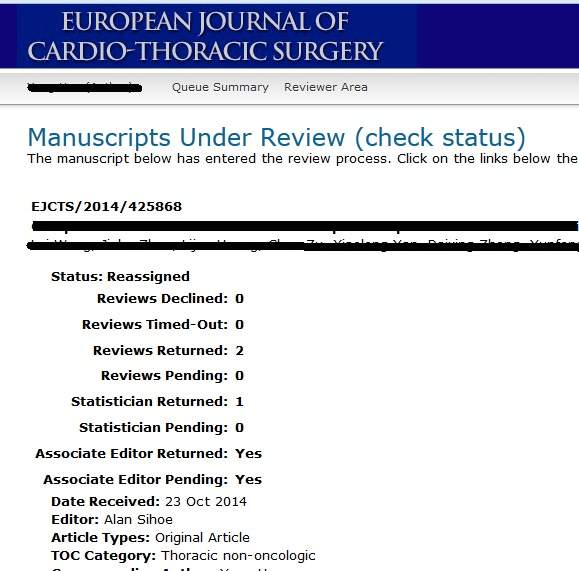EJCTS审稿一月半后reassigned是什么意思?已有1人参与