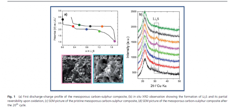 请大家帮我看看这图,a)与b)该怎么分析呢?我很疑惑,b)图中最下面一条线对应a)图中的放电阶段第一个点,可是刚开始放电怎么会有Li2S生成呢?