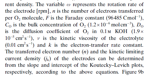 燃料电池ORR催化剂研究的LSV测试后进行电子转移数目计算的问题已有5人参与