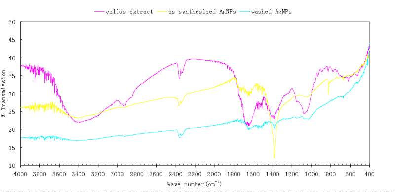 感觉自己的结果和一篇文献挺像的,但是峰没有他这么明显而且峰的位置跟他的也有一点不一样,他在结果里是比较了(a)和(b)的变化说明那些基团对纳米银的合成起到作用,从(c)看出那些基团对纳米银的稳定起到作用,我的不可以这样解释吗?