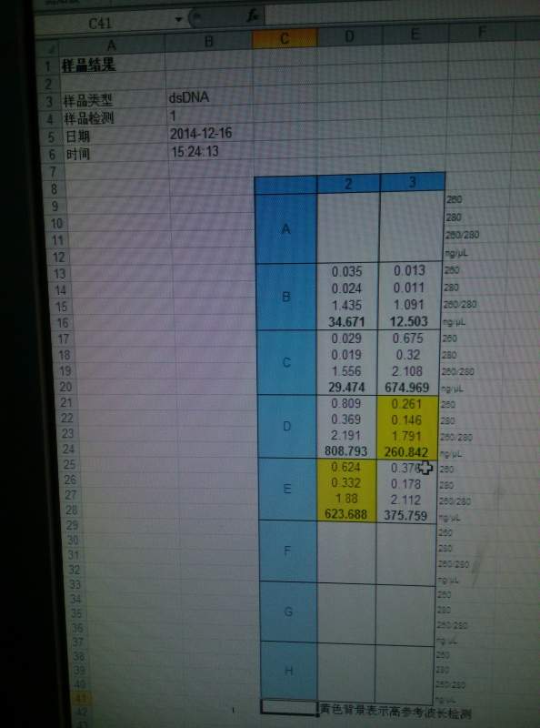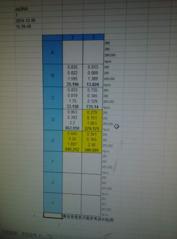 用多功能酶标仪做核算测定 ,测的是从柽柳中提的DNA ,结果中有个别样品的表格背景是黄色 ,请问是什么意思 大神么帮帮忙啊。 IMG_20141216_152831.jpg IMG_20141216_154039.jpg |