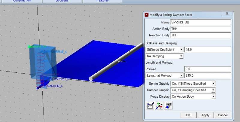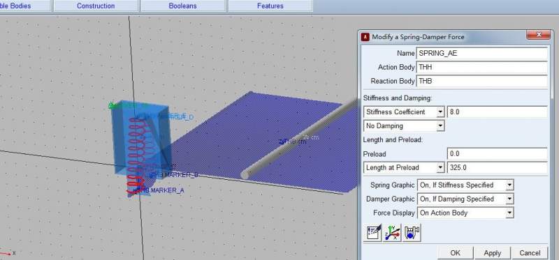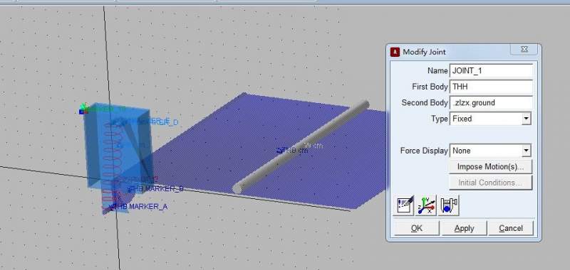 如图1proe模型,圆钢放置于平板上,在adams软件中给模型添加了ABDE四个maker点,选择AE、BD分别添加弹簧,并设置了相关弹簧参数,添加圆钢与板的接触,板与弹簧盒的接触,板和圆钢的质量也设置了,分析的时候为啥圆钢不会沿着板滚动并下落?是不是有哪些参数没设置对?具体的参数设置如图2-7所示,刚入门求指导! 图1 图2 图3 图4 图5 图6 图7 |