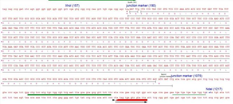 我用GCK软件做了pET30a的质粒,并插入了h基因,以前没做过类似操作,不知道读码框有无移位,请高手给检查一下吧,出现错误请指出,非常感谢。 上传了我做的软件,以及pet30a 的阅读框部分,拜托拜托!! 1.jpg 2.jpg |