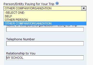 我是研究生,去美国开会,有两个问题,1.我选签证类型是 B1, B2, B1/B2? 2.费用由导师从科研经费提供。谁资助你费用这一栏,可以选 self, other person, other company/organization. 我应该填哪个,选了后,其他的怎么填,比如与资助人的关系,我看不到有师生关系。见图。 谢谢帮我!