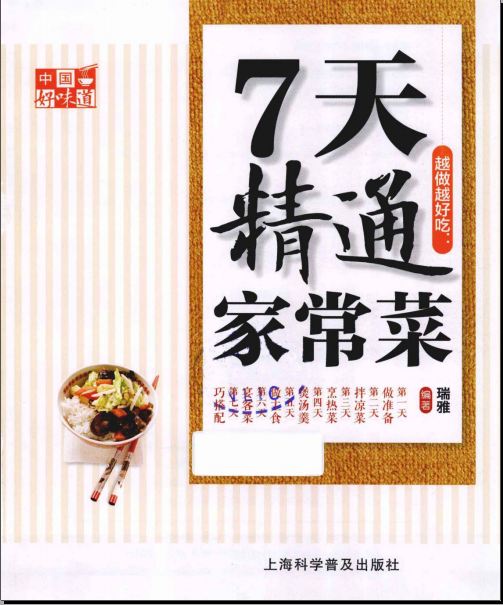 本内容由用户自主发布,如果其内容涉及到知识产权问题,其责任在于用户本人,如对版权有异议,请联系邮箱:xiaomuchong@tal.com - 附件 1 : 中国好味道:7天精通家常菜.瑞雅.全彩版.pdf