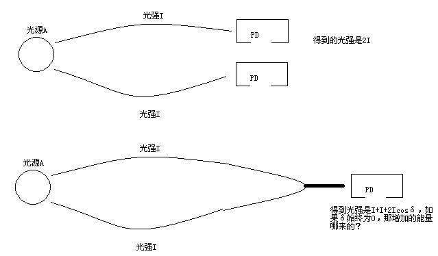你是被自己的图给骗了。你把完整的光路图画出来,具体用什么元件实现你的这种情况都画下来,光的传播方向之类都考虑进去,就知道能量去哪了。