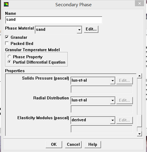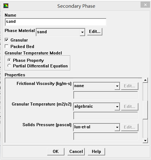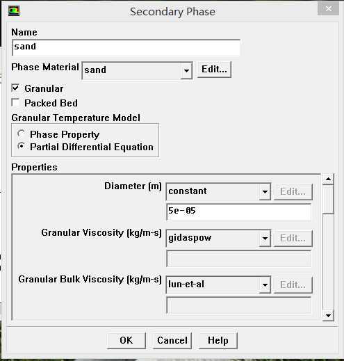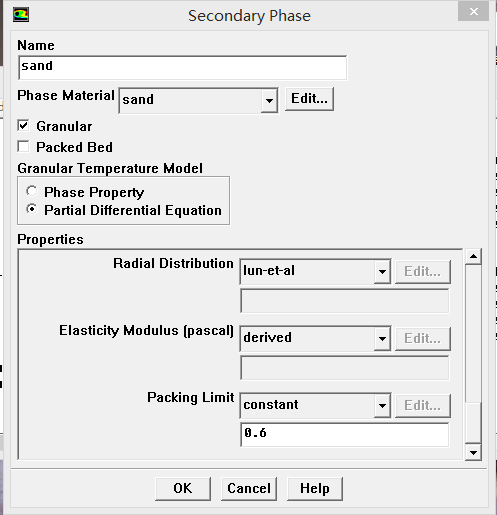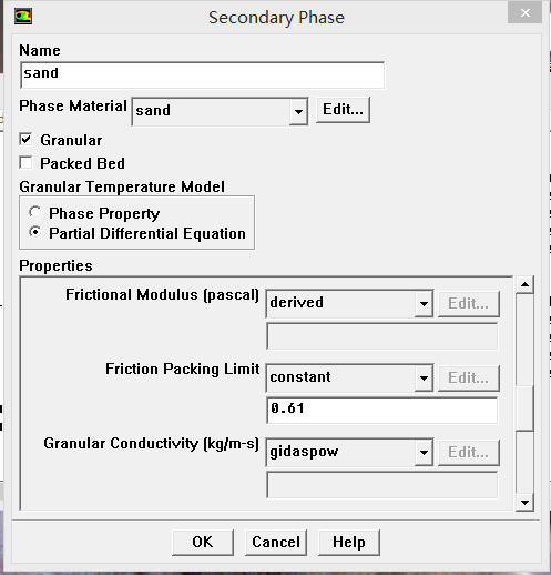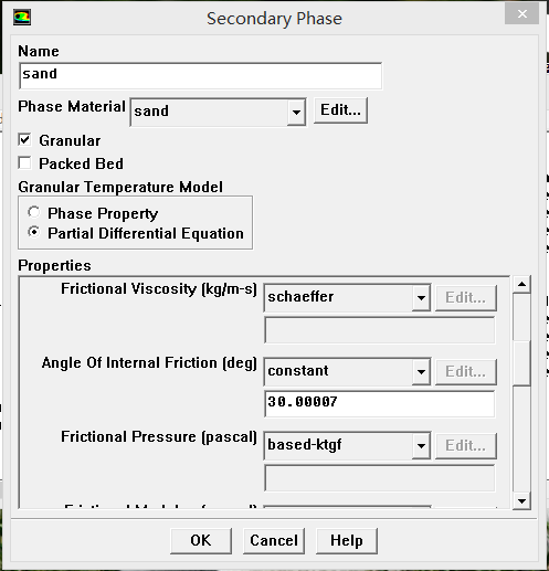 你这里是稠密颗粒流吗?还是稀疏颗粒流?另外颗粒与壁面碰撞恢复系数和颗粒镜面反射系数这两系数只有在某个区域全部充满第二相的情况下,才能设置谁说的?