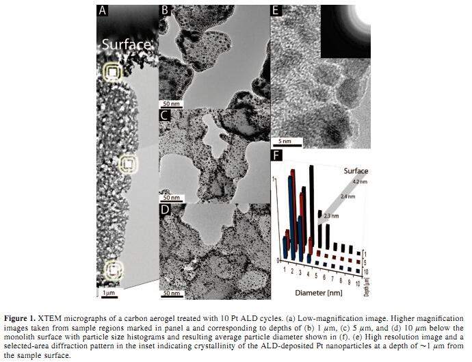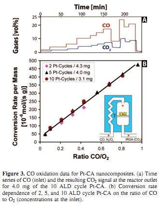 Ultralow Loading Pt Nanocatalysts Prepared by Atomic Layer Deposition on Carbon Aerogels,Nano Letters8(2008). 影响因子:12.186 摘要:Using atomic layer deposition (ALD), we show that Pt nanoparticles can be deposited on the inner surfaces of carbon aerogels (CA). The resultant Pt-loaded materials exhibit high catalytic activity for the oxidation of CO even at loading levels as low as ∼0.05 mg Pt/cm2.We observe a conversion efficiency of nearly 100% in the 150 250 °C temperatures range, and the total conversion rate seems to be limited only by the thermal stability of the CA support in ambient oxygen. The ALD approach described here is universal in nature, and can be applied to the design of new catalytic materials for a variety of applications, including fuel cells, hydrogen storage, pollution control, green chemistry, and liquid fuel production. 中文翻译摘要:应用原子层沉积技术,我们可以将大量的纳米粒子堆积到碳气凝胶表面。合成的载铂材料对CO的氧化具有很高催化活性,即使在铂含量仅为0.05mg/cm2。在150-250度范围内有几乎100%的转化效率。总的转化效率仅仅取决于氧周围的碳气凝胶的热稳定性。这里所描述的原子层沉积技术在自然界很普遍,可以应用到新型催化剂领域,包括燃料电池、储氢、污染控制、绿色化学和液体燃料等。 想获得更多资源可点击链接http://www.tjdrfk.com/news/vfrtgb.html 图片3.jpg 图片1.jpg 图片2.jpg [ Last edited by liwentao2010 on 2014-12-30 at 22:07 ] |