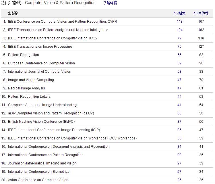 感觉Google学术的H5指数对期刊/会议的评价比中科院的分区靠谱,并不仅仅看IF,而且并不排斥高水平的会议。与行内人士的心中感觉基本一致,也给行内新手了解行内哪些会议是高水平的(会议没有IF啊)。例如 1.jpg 2.jpg 3.jpg 4.jpg |