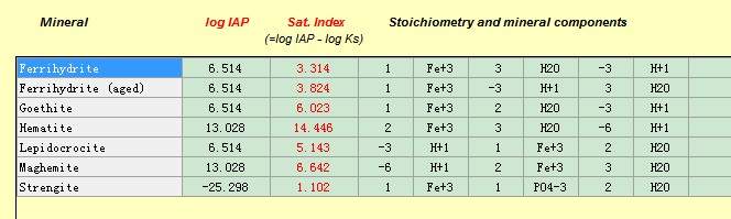 最近研究Fe(III)除磷的体系,文献上一般都说是形成磷酸铁沉淀,然后我自己用Visual MINTEQ 3.1计算了一下,明明就是赤铁矿和针铁矿的过饱和度更高 也就是说,应该先生成赤铁矿沉淀然后是针铁矿沉淀。 紧接着我又困惑了,为什么可以合成针铁矿? 模拟软件与实际溶液情况确实不同,但是按道理应该是直接生成赤铁矿呀? 有点不解 欢迎大家来探讨探讨 |