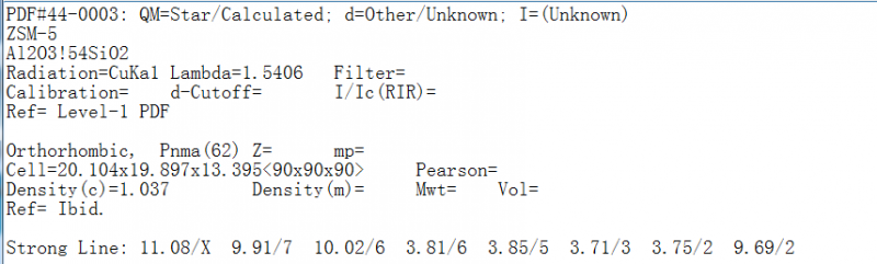 晶体学的各位大神们,麻烦你们给一下ZSM-5的cif格式的结构信息。图片是这一样品的XRD标准卡片上的信息,请大神们给找一下这个cif格式的文件,比较急用,重谢!