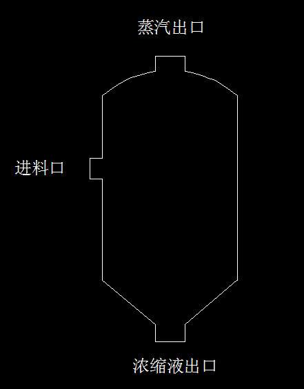 如下图所示为一蒸发器,其有三个口,分别为进料口,蒸发出口和浓缩液出口。进入蒸发器的80℃料液由于蒸发器内的低压40kpa(对应的蒸发温度75℃)而蒸发产生蒸汽。蒸汽从上面的出口被抽离,浓缩液从下面的出口流出。