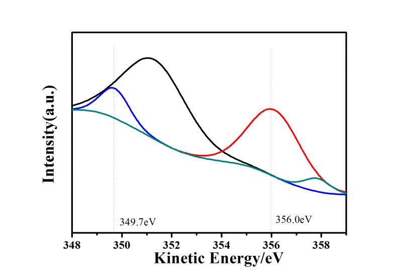 做了一个Ag的化合物,为了确定一价和0价的Ag,做了俄歇谱,对其进行数据拟合,图如下,认为350、356为1价的Ag352、357为0价的Ag,请高手帮我看看拟合是否正确。