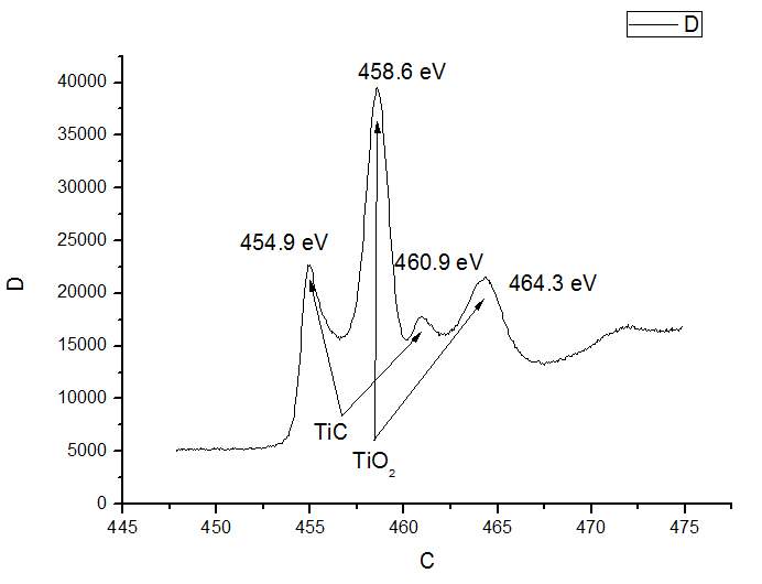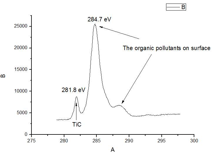 根据你的初判,应该有TiC,然后可以到http://srdata.nist.gov/xps/Default.aspx 网站查Ti和C的数据,能够与TiC对应上。至于TiO2,我是根据Ti峰的位置猜测的,应该在全谱扫描的时候看看有没有O峰,如果有O峰,也应该对O峰做高分辨。总之,全谱中有的元素,都要做高分辨。 |