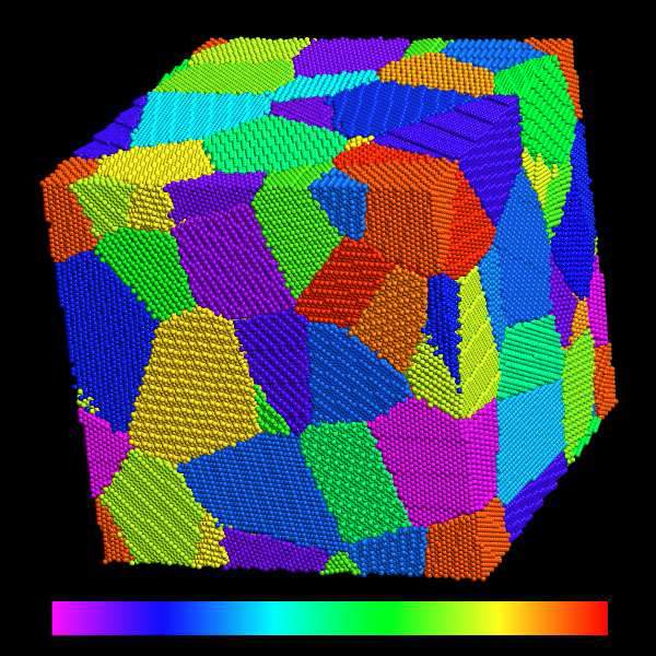 输入cfg文件下载地址: http://li.mit.edu/Archive/Graphics/A/voronoirize/FCC10x10x10.cfg 这个是输出CFG文件地址: li.mit.edu/Archive/Graphics/A/voronoirize/FCC10x10x10-voronoirized.cfg http://li.mit.edu/Archive/Graphi ... 10-voronoirized.cfg 需要先下载并安装: voronoirized.i686 然后在终端中输入:voronoirize FCC10x10x10.cfg bcc 2 2 2 FCC10x10x10-voronoirized.cfg 得到输出文件:FCC10x10x10-voronoirized.cfg 输出文件可视化方法:./A FCC10x10x10-voronoirized.cfg 之后 在图上按k键,如下解释: would divvy up FCC10x10x10.cfg into 16 truncated octahedron grains pieced together, FCC10x10x10-voronoirized.cfg, which can then be visualized by A FCC10x10x10-voronoirized.cfg Pressing 'k' (coordination number coloring) would allow one to clearly see the grain boundaries. |
