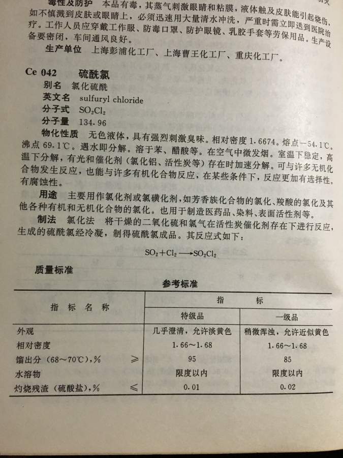 各位虫友,有哪位从事过硫酰氯生产,希望能交流。