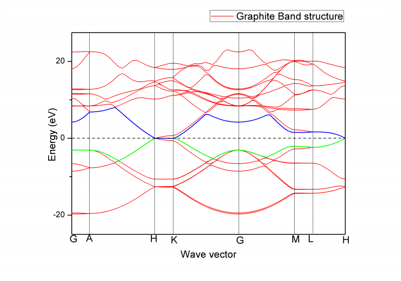 导电的强弱取决于载流子浓度和迁移率,迁移率又取决于有效质量和散射强弱.也就是说导电取决于三个因素. 这三个因素中,有效质量是可以从能带图中看出来的.有效质量是电子能量对波矢的二阶微分的逆(因为是微分,所以波矢是否是约化的已不重要),因为波矢是三维矢量,因此有效质量是个3阶矩阵,元素是m(xx)之类的分量. z方向的导电能力可通过m(zz)看出来,即能量对kz(波矢z分量)的二阶导数的倒数.从石墨能带图可以看出,三条平行于z轴的路径上能量变化都很小,因此m(zz)必然很大.形象地说,电子在这个方向非常"沉",因此导电力差. 总之,从能带图看导电能力,基本上就是看能带的平坦程度. |