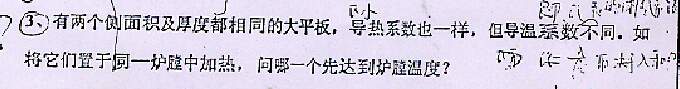 导温系数大者先达到炉膛温度。导热系数是指传播热量的能力,导温系数是传递温度扰动的能力,相当于传播热量与储存热量的能力之比。传播热量的能力相同时,储存热量的能力越差,导温系数越大,则平板更易处处温度抹平,达到炉膛温度。