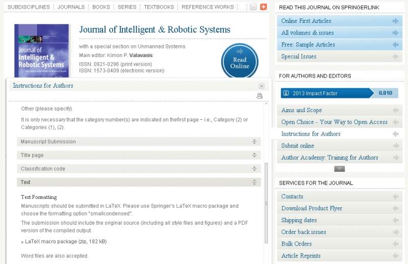 JOURNAL OF INTELLIGENT & ROBOTIC SYSTEMS初稿提交的论文格式问题