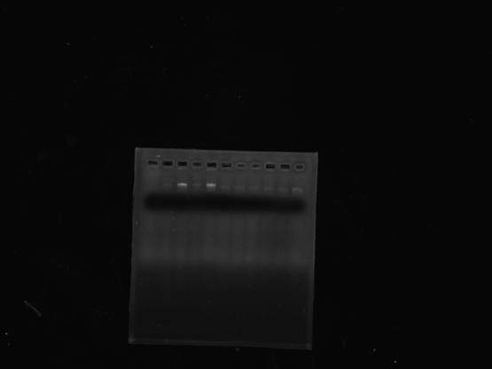 图片是提的DNA1.5%琼脂糖电泳图谱,从左到右共10样,DNA的纯度够吗?这样的DNA能用于PCR扩增吗?请指点,多谢!附图