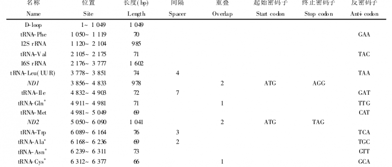 线粒体基因组结构分析