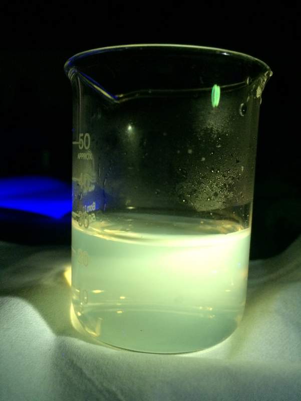 最近一直没空去做荧光光谱分析,就用紫外灯照了两照片,大神们帮忙看看是不是荧光,小弟分外感谢!