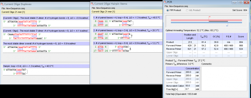 设计的引物放入oligo7中进行检验,发现PCR分析不错,但是有发夹结构和二聚体(具体结果见截图),这样的引物该不该用呢?如果不用的话,似乎找不到更好的引物。引物的判断标准怎么衡量呢?谢谢回答。